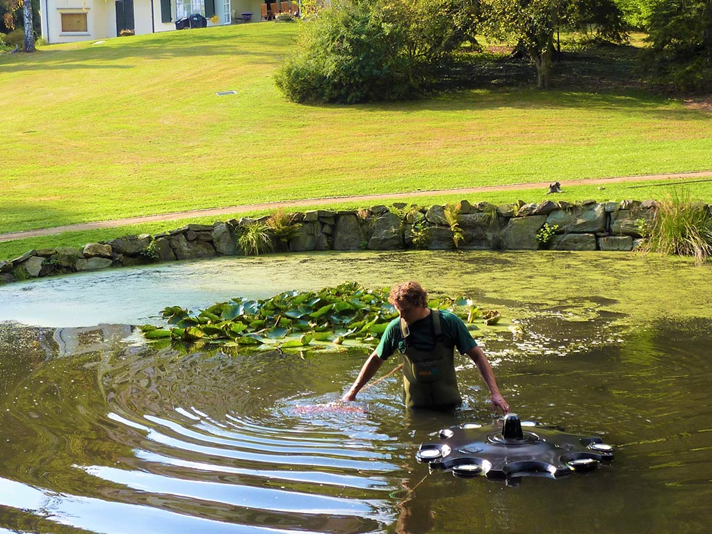 Damit Ihr Gartenteich immer sauber und gepflegt ist, bieten wir Ihnen gerne unseren Teichservice an. Wir entfernen Pflanzenreste, Laub, Sedimente und andere Verschmutzungen und sorgen somit für klares Wasser. Durch regelmäßige Pflegemaßnahmen wird übermäßiger Pflanzenwuchs verhindert.