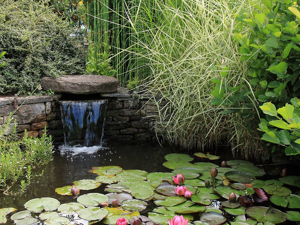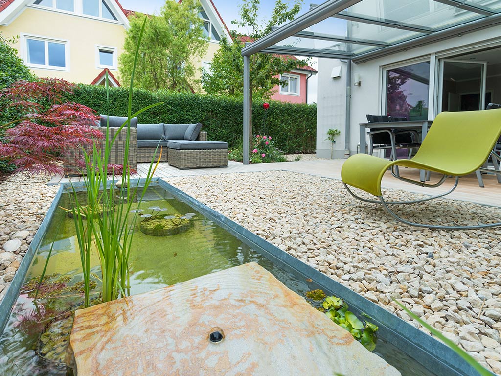 Wasser hat eine ganz besondere Wirkung im Garten. Es beruhigt und lädt zur Entspannung und Erholung ein. Vor allem aber bringt dieses Element auch Leben in Ihren Außenbereich. Das leise Plätschern, die Spiegelungen der Wolken auf der Wasserfläche oder ein faszinierendes Wasserspiel wirken auf jeden Betrachter gleichermaßen anziehend. Gerne schaffen wir Ihnen mit einem Gartenteich, einem Bachlauf oder einem Wasserspiel einen zusätzlichen Mehrwert für Ihren Außenbereich. Im Folgenden finden Sie einige Ideen, wie wir Ihren Garten mit dem Thema Wasser aufwerten können.